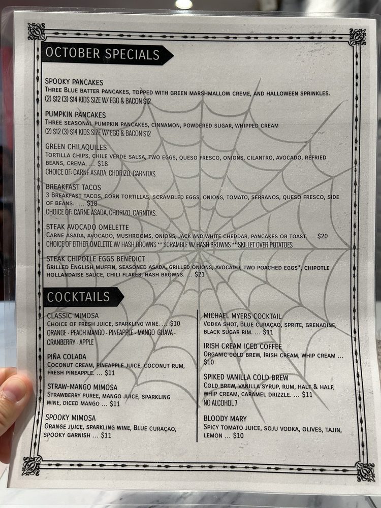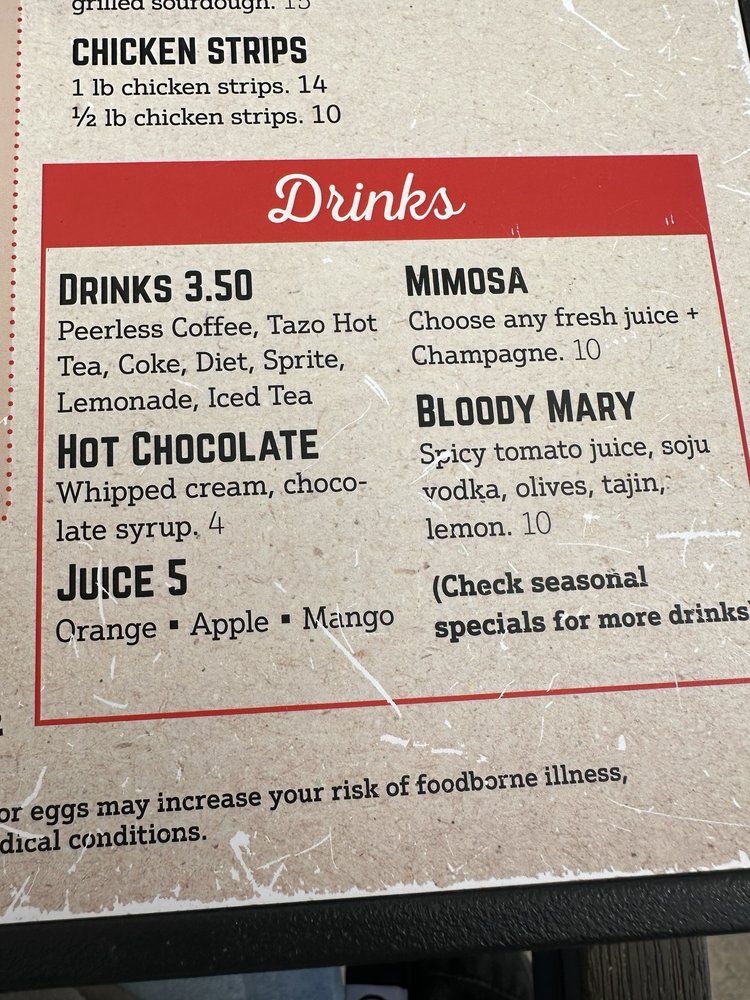 Tortilla chips, spicy red sauce, chorizo, queso fresco, two eggs any style*, avocado, crema, refried beans.