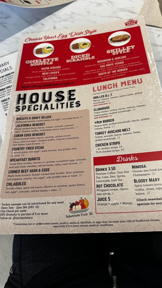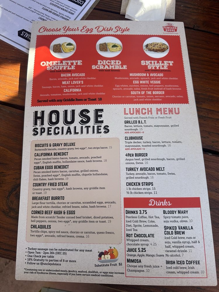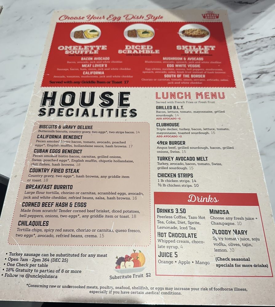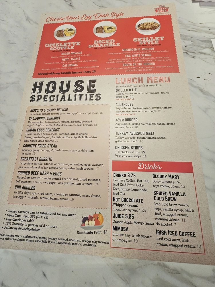 Uncle John's Pancake House - The Alameda is a casual and trendy spot located in San Jose, CA. This restaurant offers a variety of breakfast, brunch, and lunch options, including omelettes, scrambles, and skillets. Their menu features dishes like the Bacon Avocado omelette and the South of the Border scramble, catering to both meat lovers and vegetarians alike. The restaurant is known for its cozy atmosphere and excellent service, making it a great choice for families and groups. Additionally, Uncle John's provides outdoor seating, wheelchair accessibility, and free Wi-Fi. With a focus on sustainability, they offer compostable containers and plastic-free packaging. Overall, Uncle John's Pancake House - The Alameda is a welcoming spot for a delicious meal in a comfortable setting.
